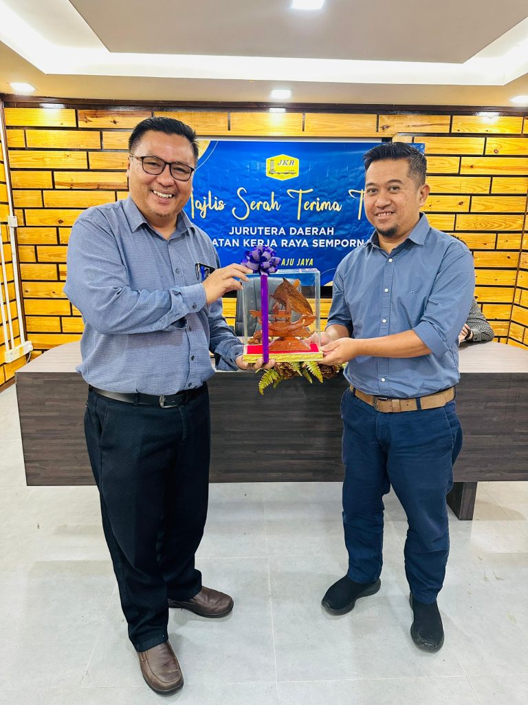 SEMPORNA, 27 MAC – Majlis Serah dan Terima Tugas di antara Jude Anthony, mantan Jurutera Daerah Semporna dengan Ir. Lim Dixon Amando selaku Jurutera Daerah Semporna yang baharu. Majlis ringkas tersebut telah disaksikan oleh Mohd Taufik Riduan, Penolong Pegawai Tadbir di JKR Semporna.
