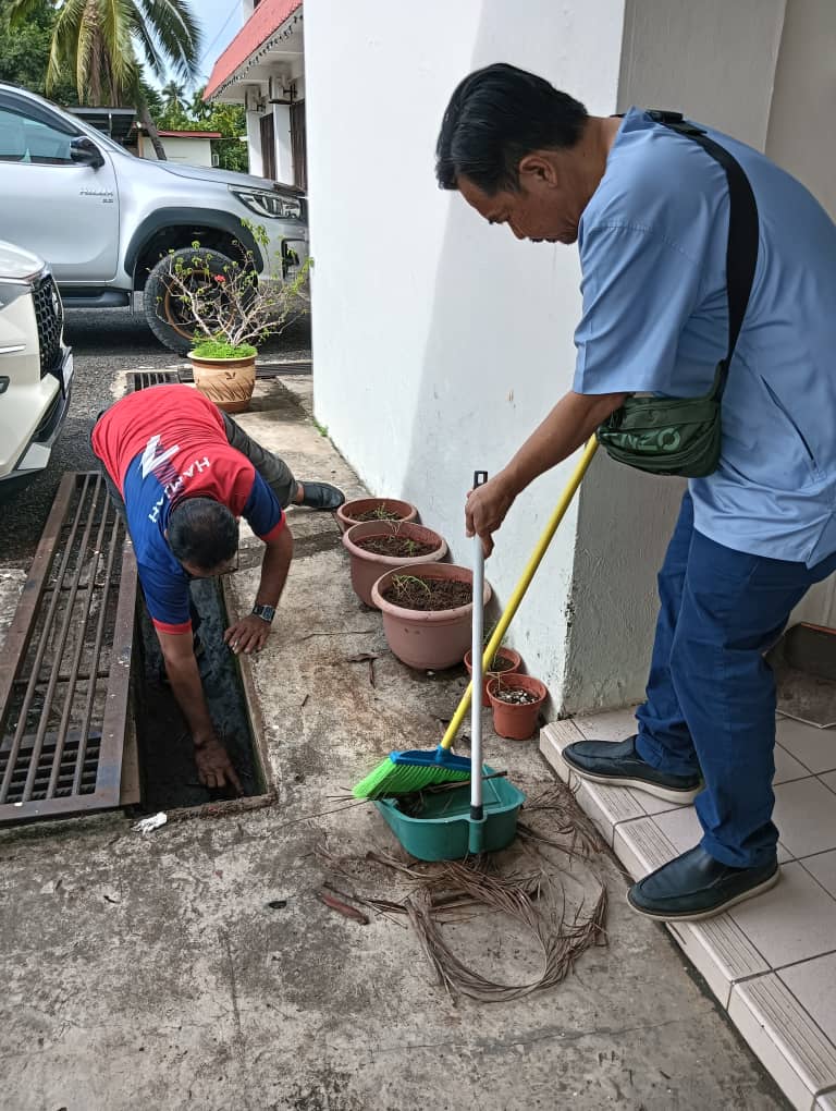SEMPORNA, 21 JUN – Biro Kebersihan dan Keceriaan JKR Semporna, yang diketuai oleh Mohamad Felani Mursid bersama setiap kakitangan mengadakan program gotong-royong untuk membasmi nyamuk denggi.