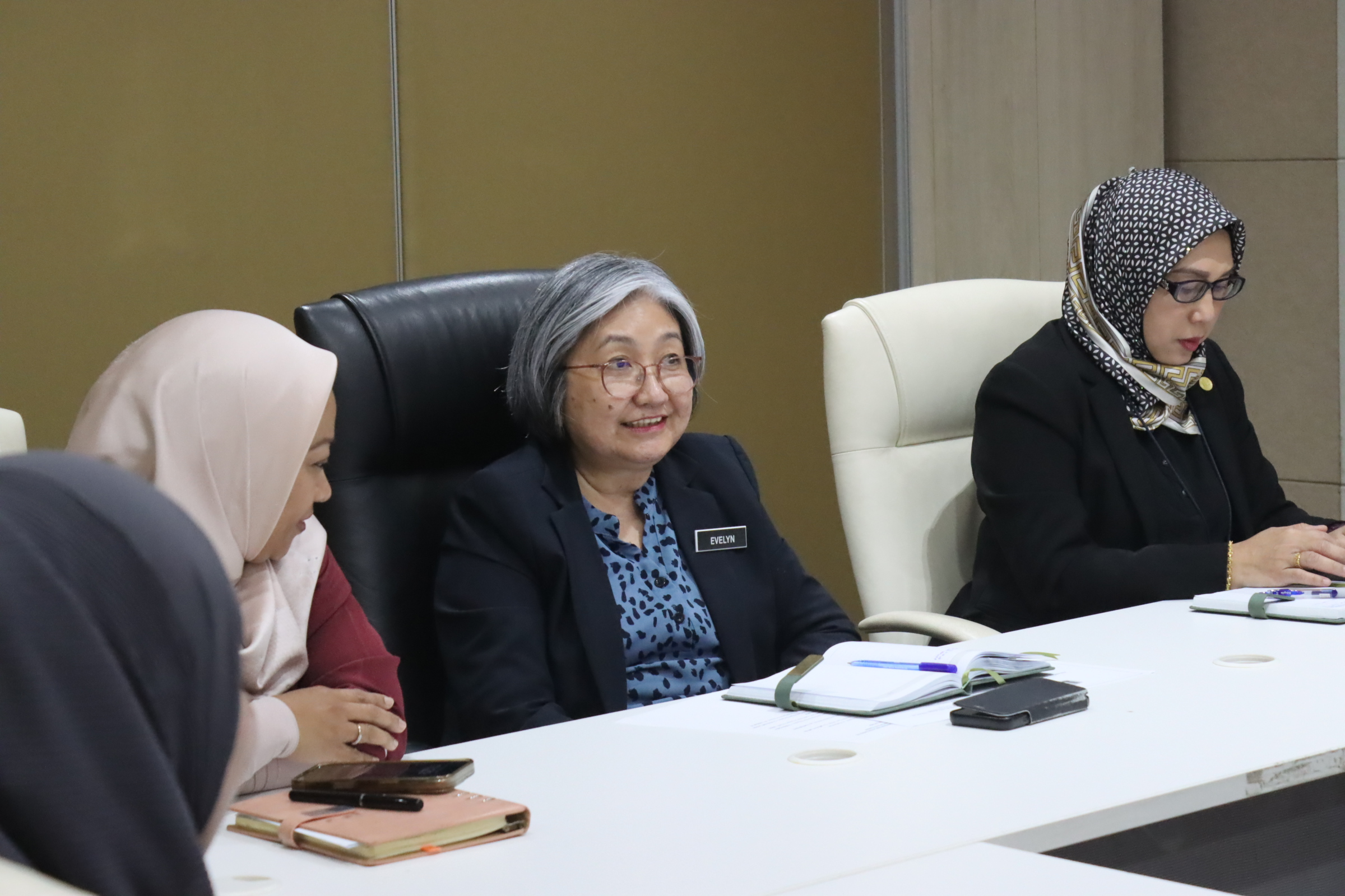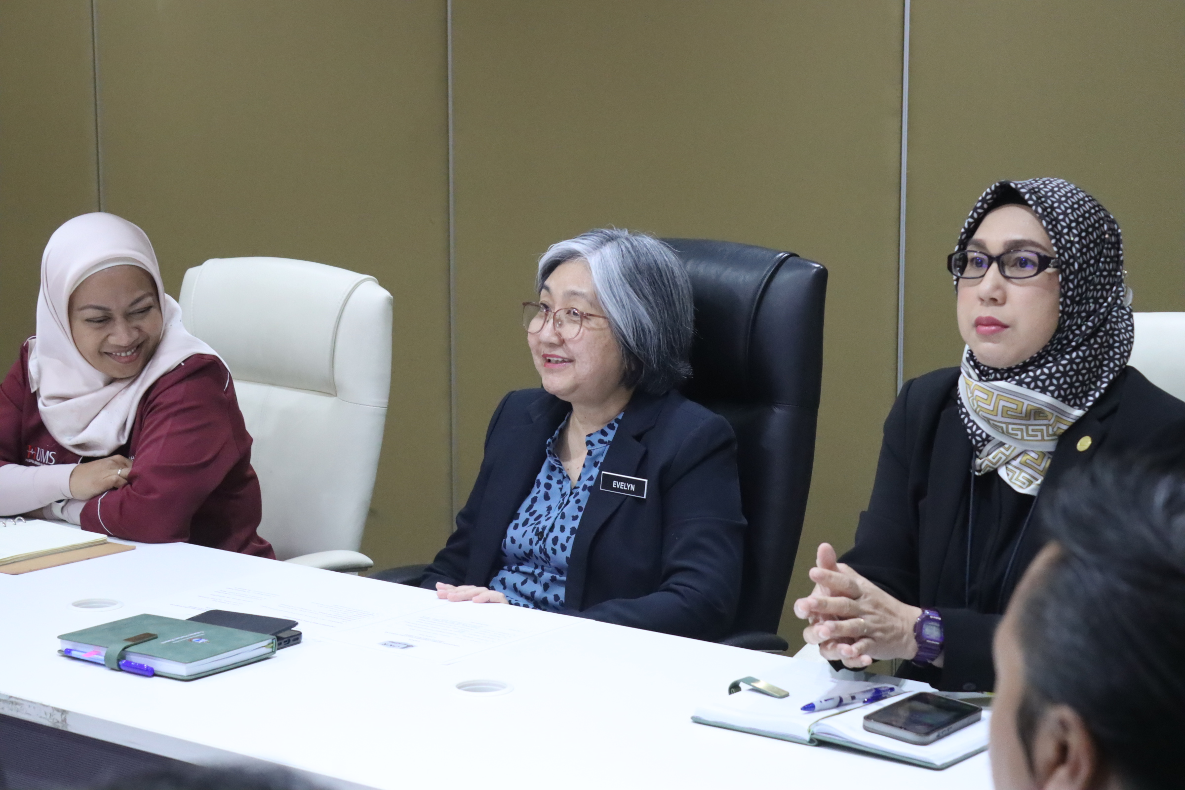 KOTA KINABALU, 04 OGOS – Pihak Pengurusan Hospital Universiti Malaysia Sabah (HUMS) yang diketuai oleh Pengarah, Prof. Madya Dr. Hajah Malehah bt Datuk Mohd Noh telah mengadakan kunjungan hormat ke JKR Sabah, yang dipengerusikan oleh Timbalan Pengarah Sektor Bangunan, Ir. Evelyn Pius.