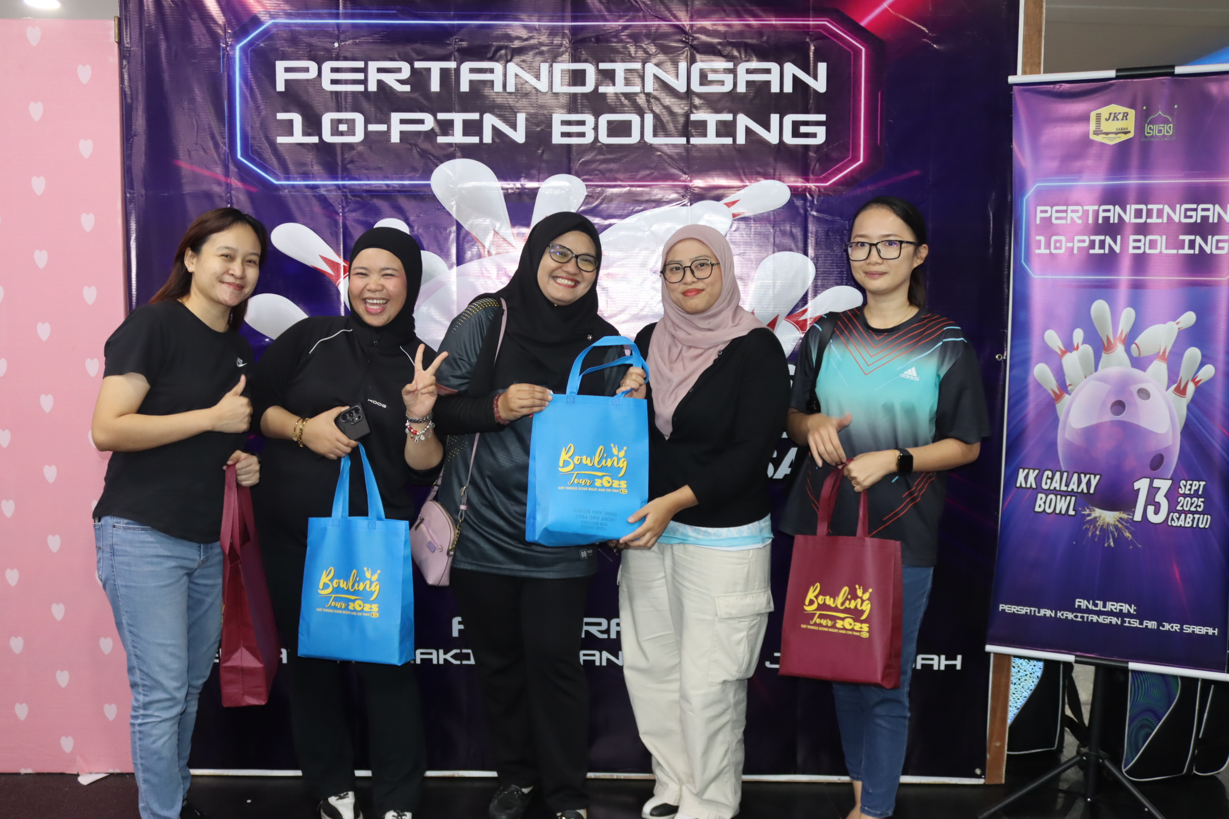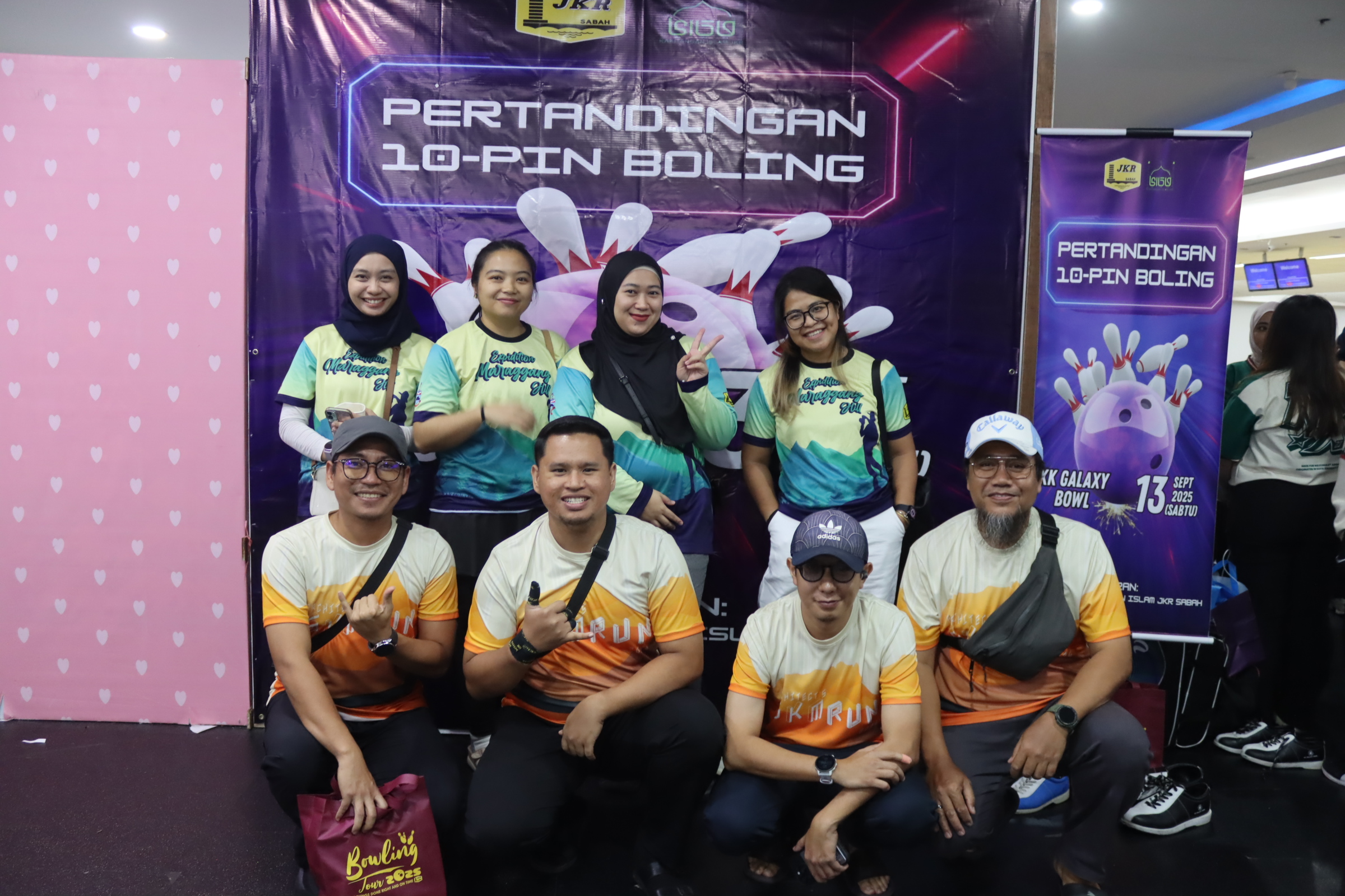 KOTA KINABALU, 13 SEP – Pertandingan Tenpin Boling 2025 anjuran Persatuan Kakitangan Islam JKR Sabah telah berlangsung meriah di KK Galaxy Bowl, Kota Kinabalu. Sebanyak 24 pasukan dari pelbagai daerah dan cawangan JKR Sabah mengambil bahagian, termasuk JKR Bandaraya KK, JKR Tuaran, JKR Papar, JKR Kota Belud serta cawangan seperti Kejuruteraan Elektrikal, Penyenggaraan Jalan, Audit Dalaman & Piawaian Kualiti, Arkitek, Utiliti & Alam Sekitar, Perbelanjaan & Bajet, Projek Jalan Luar Bandar, Jambatan, Cerun, Sumber Manusia, Ukur Bahan dan Kontrak & Ukur Bahan Pan Borneo.