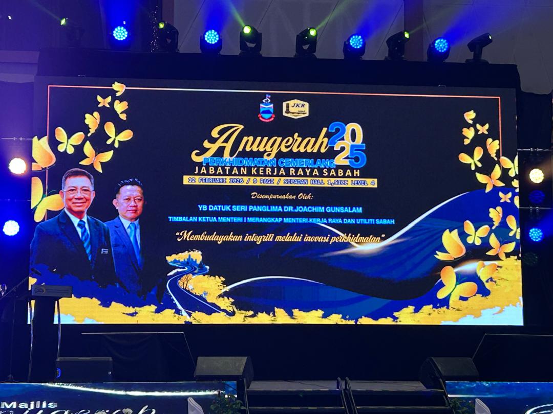 KOTA KINABALU, 12 FEB – Jabatan Kerja Raya Sabah telah melaksanakan Majlis Anugerah Perkhidmatan Cemerlang JKR Sabah Bagi Tahun 2025 di Pusat Konvensyen Antarabangsa Sabah (SICC), semalam.