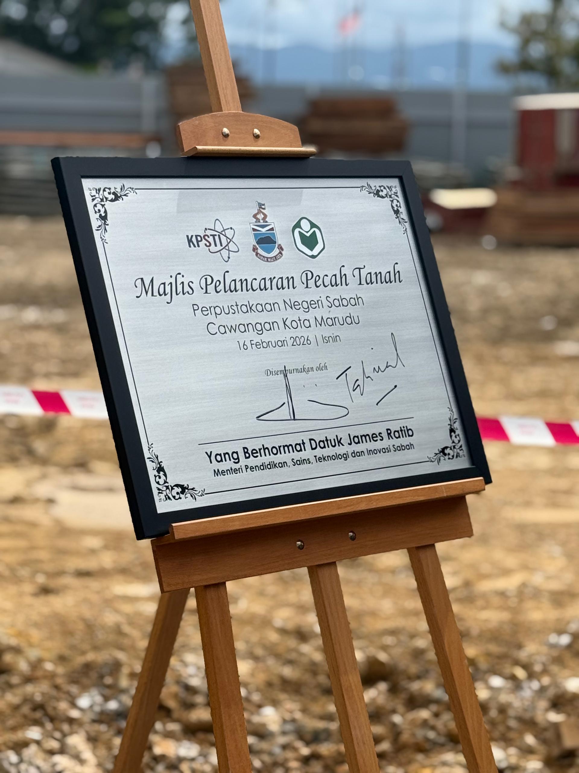KOTA MARUDU, 16 FEB – Majlis Pecah Tanah bagi Projek Pembinaan Bangunan Baharu Perpustakaan Kota Marudu telah disempurnakan oleh Menteri Pendidikan, Sains, Teknologi dan Inovasi, YB Datuk James Ratib.